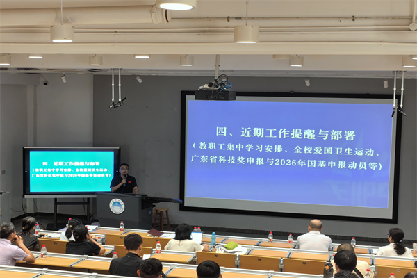 会议还对近期重点工作进行了部署。姚顺春副院长就科学技术奖申报、国家自然科学基金项目申报等工作作了动员部署,鼓励教师提前谋划、积极准备,力争取得新的突破。葛瑞明副书记就学生在校安全、宿舍管理规定和学院一站式社区建设情况等做了提醒和通报。学院办公室相关人员就教职工集中学习安排及全校爱国卫生运动实施方案进行了解读。