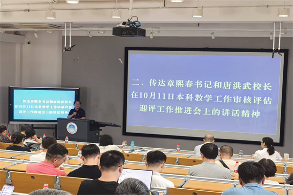 会上,邬智书记重点传达了学校党委书记章熙春、校长唐洪武在10月11日“全校本科教学工作审核评估迎评工作推进会”上的重要讲话精神。他强调,全院师生要深刻领会学校领导的讲话精神,充分认识本次审核评估对提升人才培养质量、推动学校高质量发展的重要意义,切实增强迎评促建的责任感和紧迫感。并把本科迎评工作作为当前最为重要和紧迫的工作。他同时也简要传达了学校巡查整改会议精神。