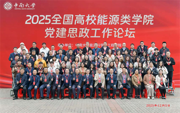 为深入学习贯彻党的二十届四中全会精神,推动新时代能源类学院党建思政工作高质量发展,2025年12月4日至6日,由中南大学能源科学与工程学院承办的“全国高校能源类学院党建思政工作论坛”在湖南长沙成功举办。本次论坛汇聚了清华大学、华南理工大学等全国四十余所高校能源类学院党建思政负责人及相关专家学者,通过经验分享、交流互动和问题研讨,深化新时代立德树人工程实践,共同书写党建引领能源学科发展、思政赋能人才培养新篇章。