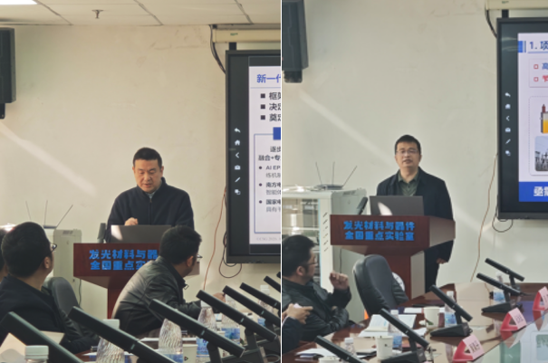 在后续报告环节,由华南理工大学多位青年人才接棒依次进行专题报告:材料学院甘久林研究员介绍了光纤传感技术在健康监测领域的应用;材料学院樊宝兵教授探讨了高效低成本界面材料在新兴光伏中的应用前景;电力学院王瑞副教授分享了电气与材料交叉领域的研究探索与成果;软件学院院长蔡毅教授则从大模型知识增强与推理技术角度,展现了人工智能在电力系统中的潜力。