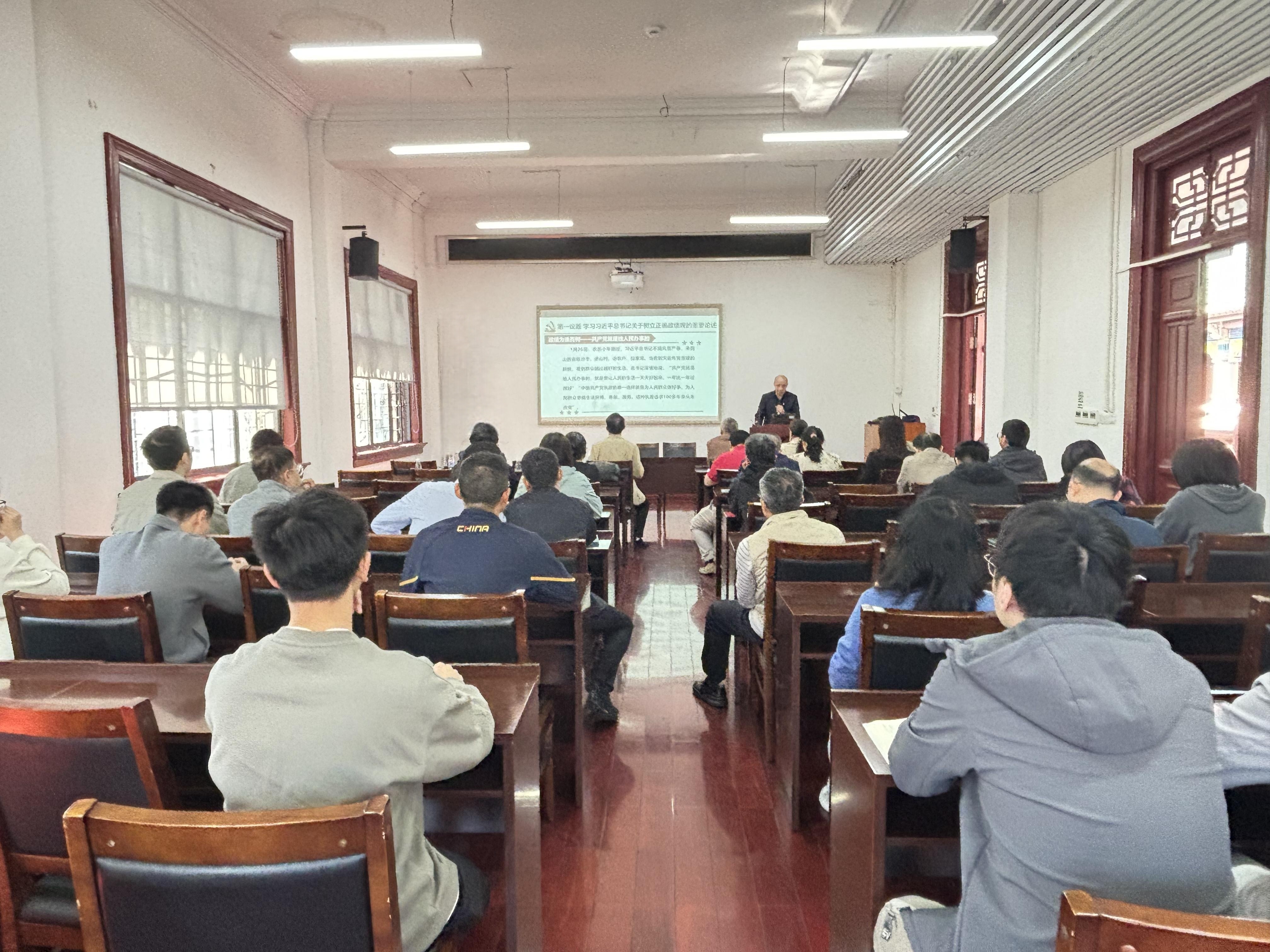 本次会议第一议题由学院党委副书记、纪委书记葛瑞明带领与会人员学习习近平总书记关于树立和践行正确政绩观的重要论述。他指出,政绩观是党性修养和政治立场的重要体现,全体党员干部要始终坚持以人民为中心的发展思想,立足岗位实际,多为师生做实事、做好事,以实际行动诠释正确政绩观的深刻内涵。