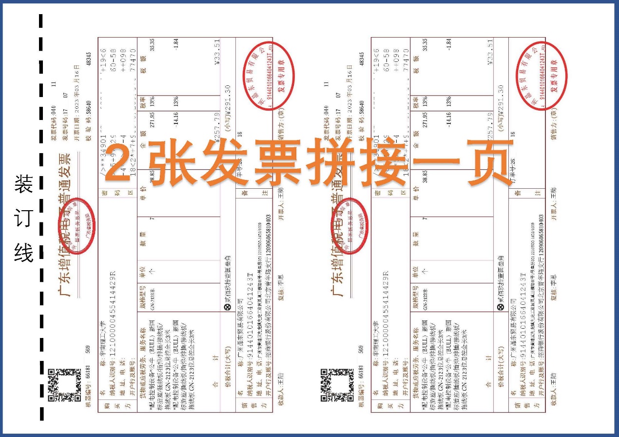 1)请使用A4纸打印电子发票。同时报销多张电子发票时,倡议每页打印多张电子发票(每页不超过4张,建议只拼接2张),并且双面打印。