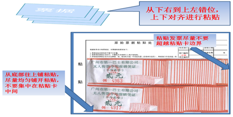 3.票据须均匀、平整地在粘贴卡上遵循从下右到上左错位粘贴。