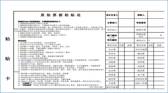 (1)所有小于A4的票据、附件(如交通票据、刷卡小票等),都应粘贴到《粘贴卡》上,以免散失。