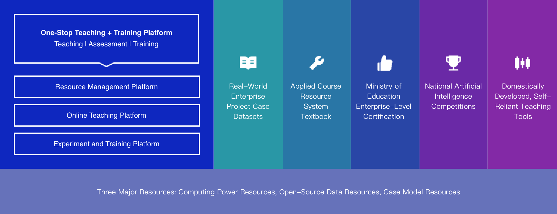 The laboratory is equipped with a one-stop teaching and training platform featuring extensive educational resources, including Python fundamentals, deep learning, computer vision and applications, convolutional neural networks, and recurrent neural networks. It comes preloaded with massive open datasets from real-world business scenarios, encompassing multi-scenario transportation datasets, large-scale natural language processing and knowledge graph datasets, as well as video and OCR business datasets. With the rapid advancement of Big Data science, education must shift from basic knowledge acquisition to the fostering of creativity and intelligent thinking. By supporting participation in major competitions, our laboratory enables students to learn through dynamic interaction and real-world challenges. This approach fosters a spirit of innovation, practical application, and continuous improvement, ultimately contributing to the acceleration of educational modernization.
