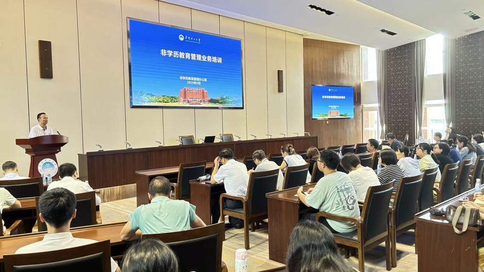 为规范非学历教育办学,防范办学风险,促进学校非学历教育健康有序开展,9月25日上午,非学历教育管理办公室组织开展了2025年非学历教育业务培训。国际交流与合作处、离退休工作处相关领导及工作人员,各院(系)分管非学历教育工作的院(系)领导及工作人员,继续教育学院院领导、培训部门负责人及业务人员等参加了培训。