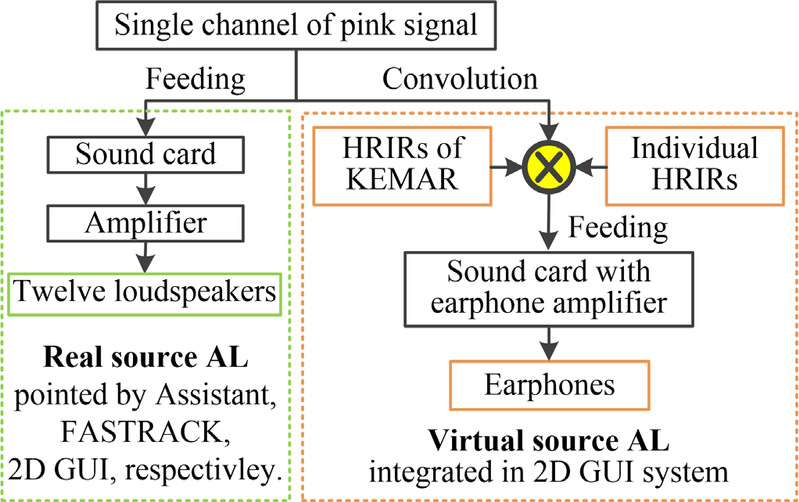 Abstract—Auditory localization of spatial sound sources is an important life skill for human beings. For the practical application-oriented measurement of auditory localization ability, the preference is a compromise among (i) data accuracy, (ii) the maneuverability of collecting directions, and (iii) the cost of hardware and software. The graphical user interface (GUI)-based sound-localization experimental platform proposed here (i) is cheap, (ii) can be operated autonomously by the listener, (iii) can store results online, and (iv) supports real or virtual sound sources. To evaluate the accuracy of this method, by using 12 loudspeakers arranged in equal azimuthal intervals of 30° in the horizontal plane, three groups of azimuthal localization experiments are conducted in the horizontal plane with subjects with normal hearing. In these experiments, the azimuths are reported using (i) an assistant, (ii) a motion tracker, or (iii) the newly designed GUI-based method. All three groups of results show that the localization errors are mostly within 5–12°, which is consistent with previous results from different localization experiments. Finally, the stimulus of virtual sound sources is integrated into the GUI-based experimental platform. The results with the virtual sources suggest that using individualized head-related transfer functions can achieve better performance in spatial sound-source localization, which is consistent with previous conclusions and further validates the reliability of this experimental platform.