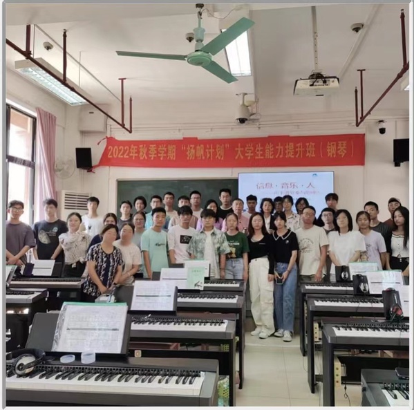 2022年10月,学校举办了2022年秋季学期“扬帆计划”大学生能力提升班,面向家庭经济困难本科生免费开设了钢琴、古筝、声乐基础、围棋、简易中国画、朗读、手机摄影、太极防身术、爵士舞、中国形体舞蹈等10门课程,335名学生参加了学习。