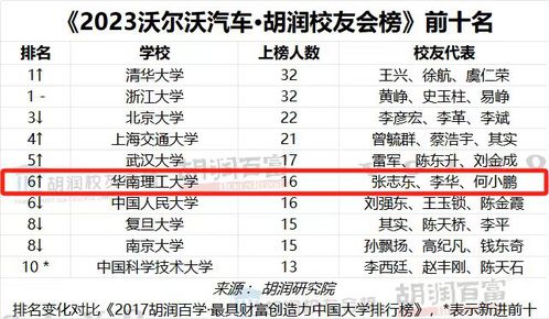 1月5日,胡润研究院发布《2023胡润校友会榜》。华南理工大学共有16位校友登上2023胡润百富榜,位列第六;上榜校友总财富达6227亿元,位列第四,仅次于上海交通大学、清华大学、浙江大学。