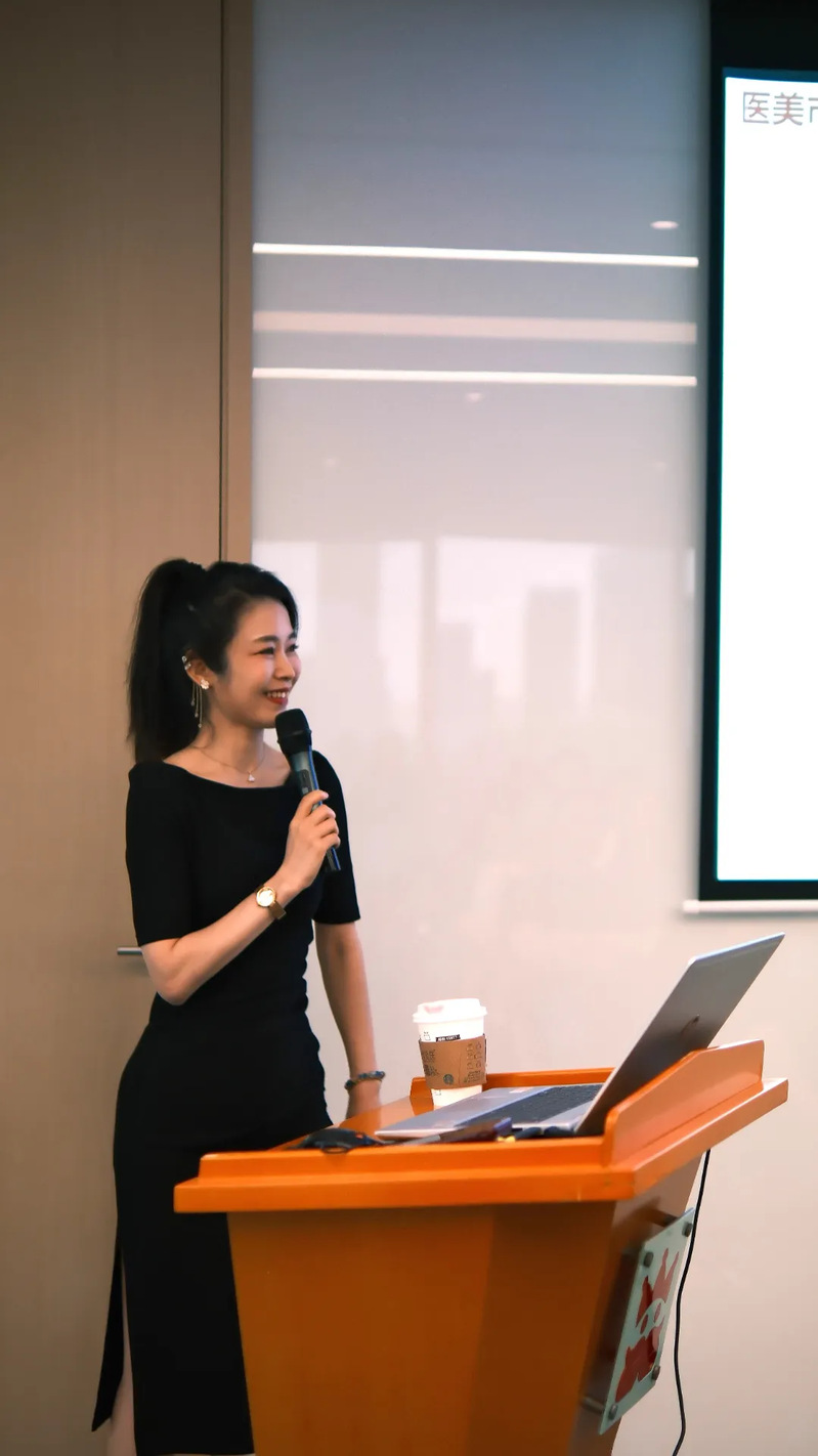 在主题分享环节,Jelly校友结合行业经验,梳理医美产业链脉络,分析了2000-2025年的审美趋势,通过模拟“医美门诊”为现场校友定制方案,同时提醒校友理性对待医美,避免盲目消费。