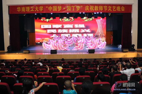 25日晚,“中国梦•园丁梦”庆祝教师节文艺晚会在五山校区体育馆举行,全场16个节目200余位演员全部来自广大教工——教学科研一线的教师、艺术学院的专业教师、机关部处的管理者、后勤岗位的年轻员工、年近古稀的退休教工、笑盈如花的小学生等,他们自编自导,为分享这快乐时光欢聚一堂,载歌载舞。