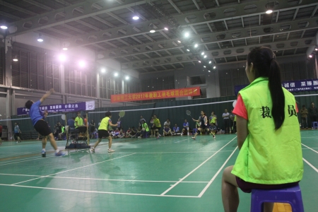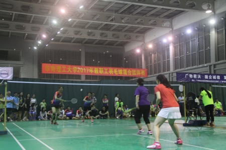 由校工会主办、体育学院协办的2017年教职工羽毛球混合团体赛于4月17日在五山校区西区羽毛球馆拉开帷幕。来自35支代表队的516位教职工参加了本次比赛,比赛按照男子单打、混合双打、女子双打、男子双打、混合双打的混合赛制进行,第一阶段采用分组循环制,第二阶段采用淘汰制。