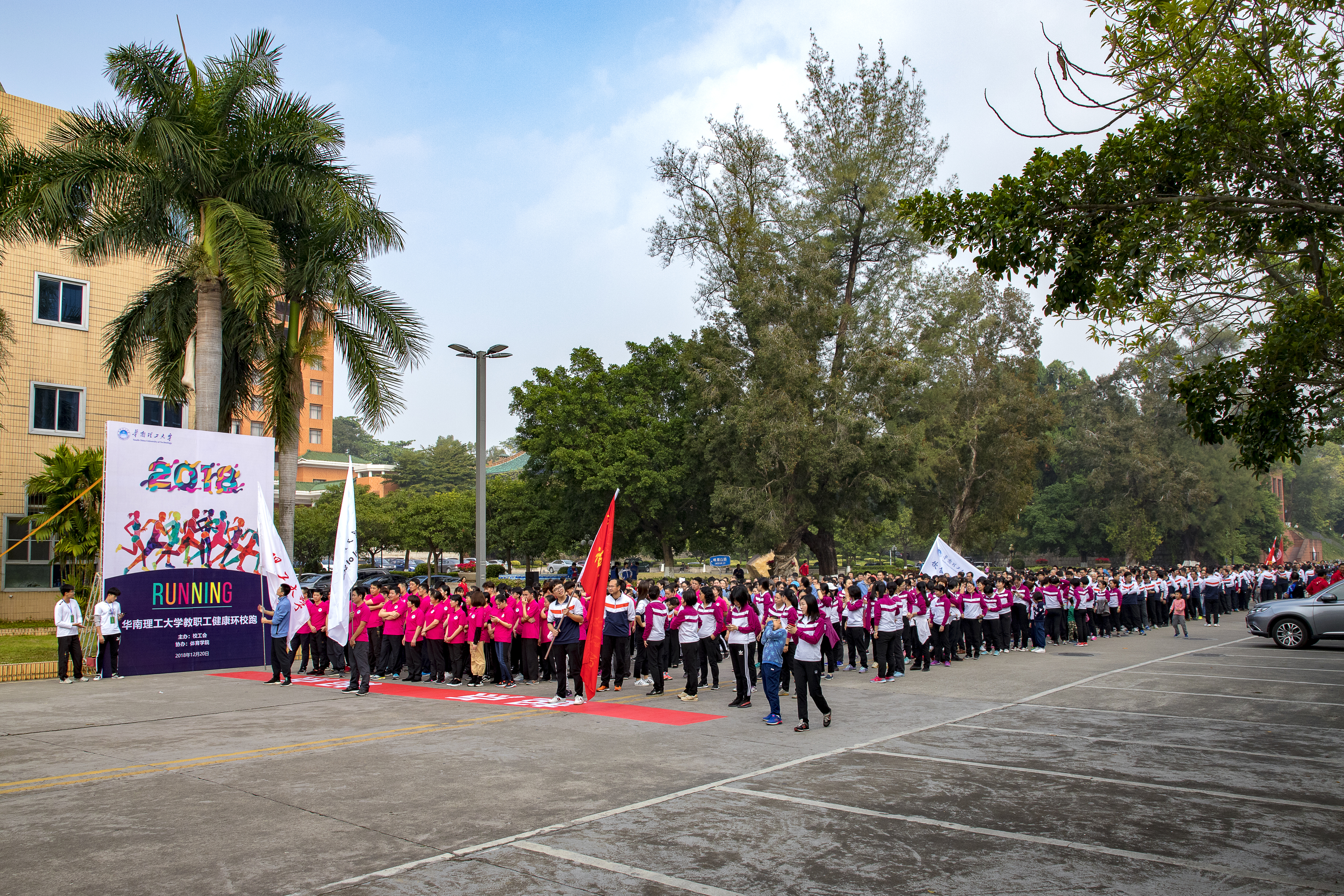 下午2点30分,艳阳高照,高松校长和刘琪瑾主席来到起跑点举枪发令,并双双领跑,总长约3.2公里的健康跑热辣开跑。在嘹亮的进行曲中, 一队队整装奔跑的方阵汇聚成华工校园冬日暖阳下的一道美丽风景线。