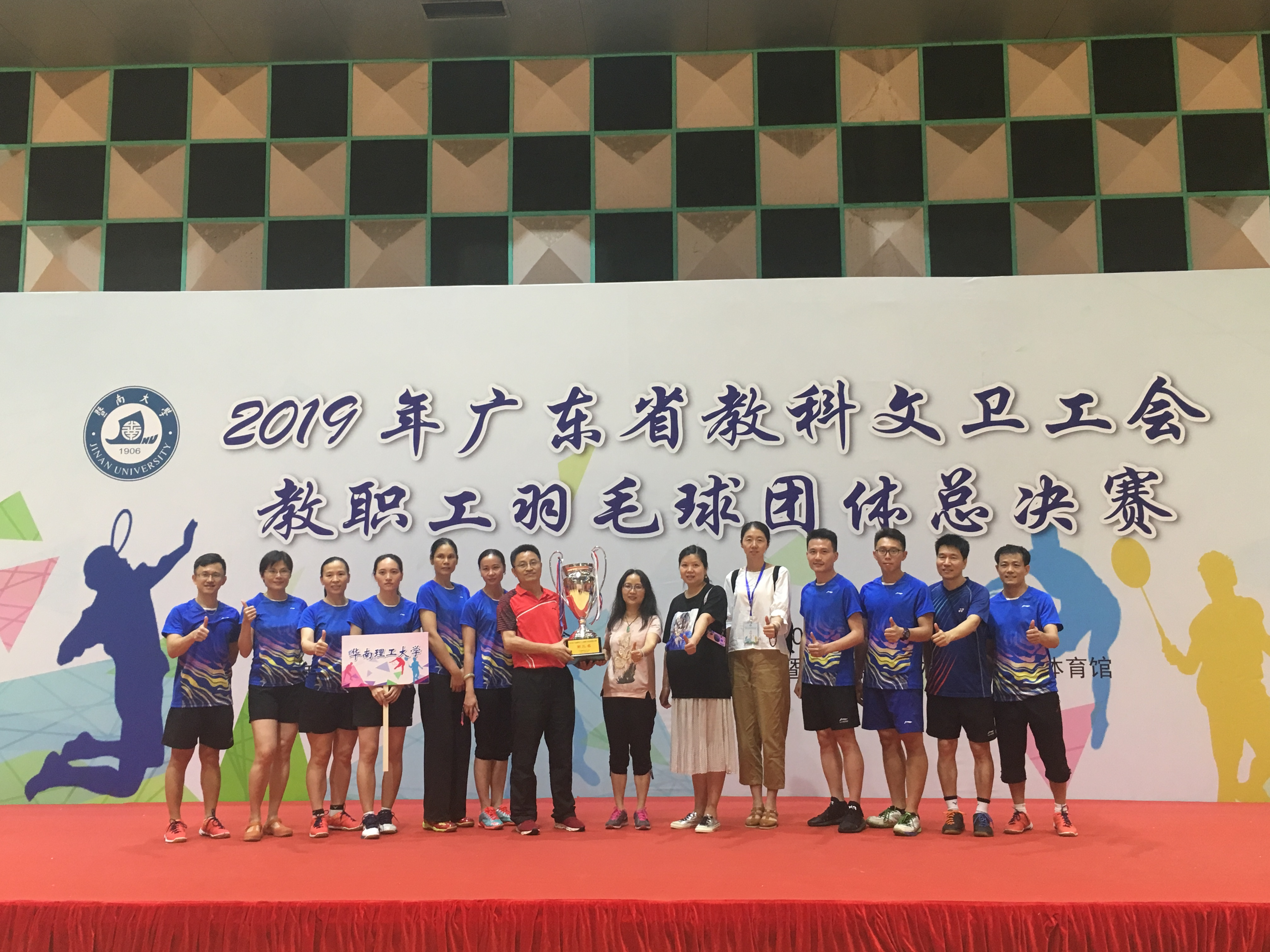 6月22日,2019年广东省教科文卫工会教职工羽毛球总决赛在暨南大学举行,来自各片区前三名的16所院校共175名运动员参加了比赛。经过紧张激烈的角逐,我校教工羽毛球队获得了总决赛季军的优异成绩。