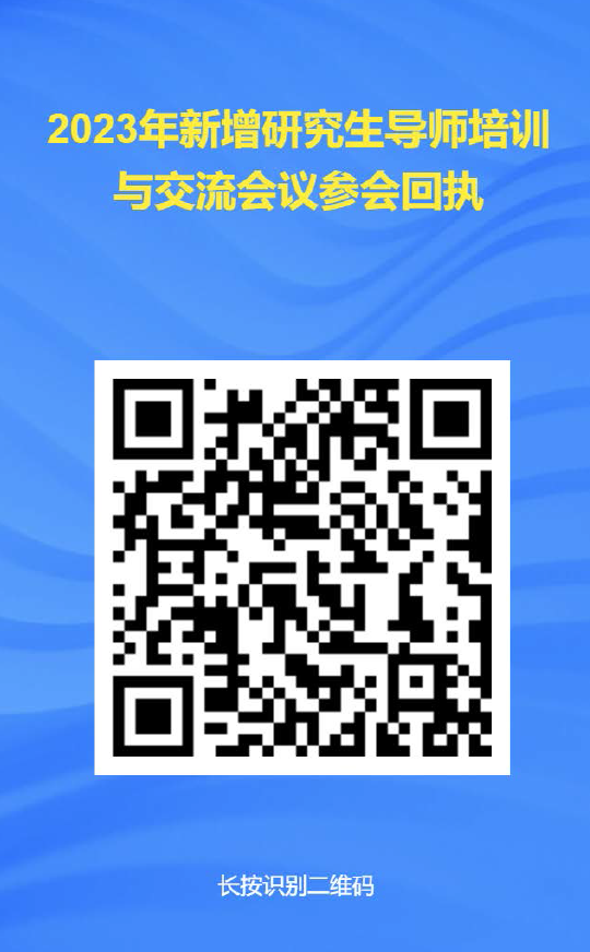 此次会议要求全校新增导师(附件1)、各院(系)研究生教育管理人员参会,请各学院11月13日前扫二维码报名参加(附件2)。若确因特殊原因不能参加培训者,本人须以书面形式向所在院(系)请假,经院(系)分管领导签字同意后交至学位办公室(笃行楼218)。