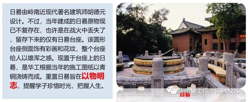 每所大学都有它的历史,但不是每所大学都有古老的建筑。华工古建筑中西合璧,争奇斗艳,比如建筑红楼、12号楼、5号楼、百步梯、日晷、发电所等。