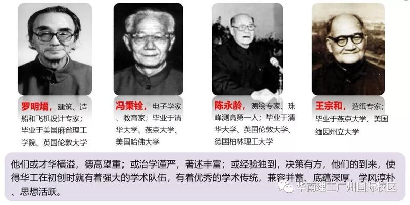 1952年的院系大调整,为华南工学院(1988年改名为华南理工大学)汇聚了一大批颇有名气的工科专家和高级知识分子,如罗明燏、冯秉铨等。