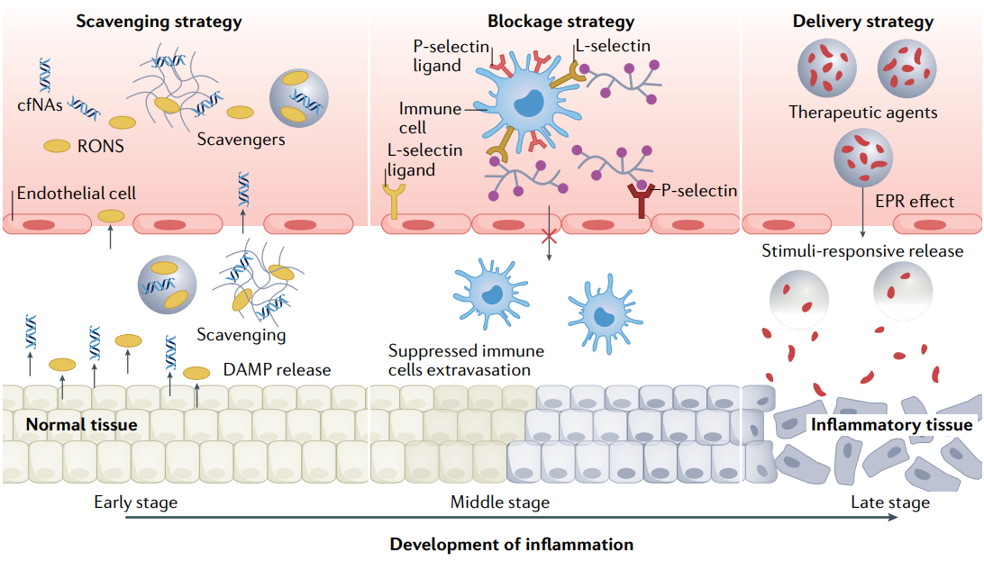针对这一问题,研究团队从炎症微环境的特征出发,系统论述了生物材料在炎症调控中的最新进展。该综述总结了近年来生物材料通过“危险分子清除”、“免疫细胞阻断”或“免疫药物递释”三大策略,在炎症发展的不同阶段调控微环境的典型范例,证明了生物材料在提高炎症性疾病的干预和治疗效果方面的潜力,最后对生物材料在精准调控炎症微环境中存在的挑战进行了讨论,并对其干预和治疗炎症性疾病的广阔前景进行了展望。该综述以“Design of therapeutic biomaterials to control inflammation”为题发表在国际高影响力学术期刊《自然评论:材料》, 全文链接https://www.nature.com/articles/s41578-022-00426-z。