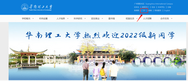 第一步:登录【华南理工大学】官网(https://www.scut.edu.cn/new/),点击【门户】(统一认证登录);