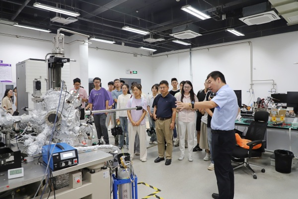 在交流环节,参访师生、校友分为两组,深入自旋科技研究院下设的学科公共平台实验室。研究院科研团队详细讲解了相关仪器设备的功能特性、应用场景、开放共享模式及预约使用流程等,并针对师生提出的技术需求、合作方向等问题进行现场答疑,为后续科研合作奠定基础。