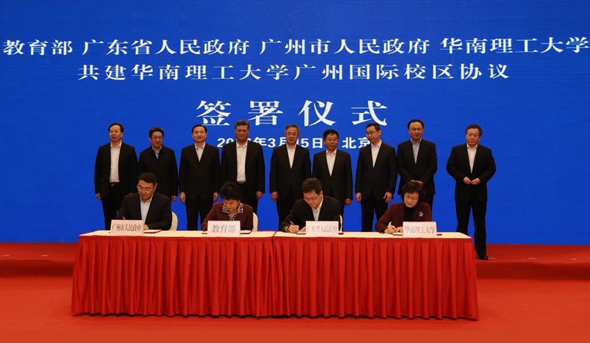 On March 15 in Beijing, witnessed Hu Chunhua, CPC Politburo Member and Secretary of the CPC Guangdong Provincial Committee, Chen Baosheng, Minister of Education, Ma Xingrui, Guangdong’s Governor, and Wen Guohui, Guangzhou’s Mayor, an agreement of carrying out the plan was signed up by delegates of the above four parties.