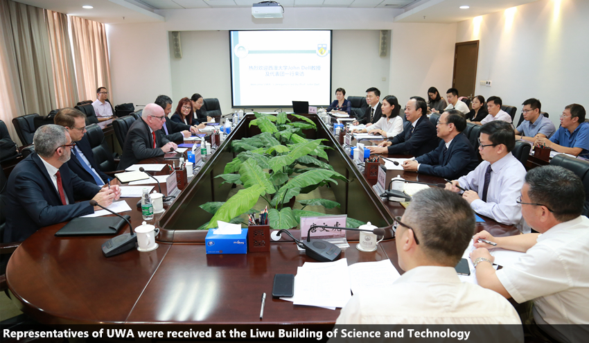 A delegation from UWA’s Faculty of Engineering and Mathematical Sciences, led by John Dell, UWA’s Pro Vice-Chancellor, paid a visit to SCUT on September 14, when Zhang Xichun, Secretary of the CPC SCUT Committee, and Qiu Xueqing, Vice President of SCUT, had a meeting with them at the Wushan Campus.