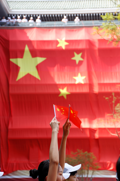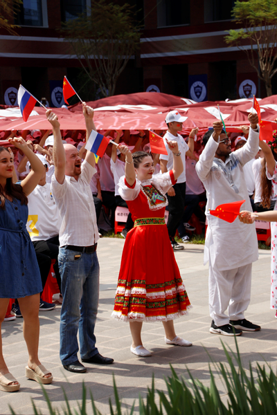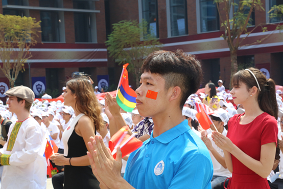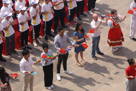 The flying national flag embodied the students and teachers’ strong patriotism and expressed their sincere blessings to the motherland
