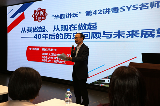 On the afternoon of December 2nd, Prof. Zhu Jingxu, a Distinguished Professor of University of Western Ontario, Fellow of Royal Society of Canada (RSC) and Canadian Academy of Engineering (CAE), and a world-famous expert in chemical engineering, was invited to visit Guangzhou International Campus (GZIC) of SCUT. As a keynote speaker of the 42nd lecture in SCUT plus “SYS” Open Lecture of Masters, Prof. Zhu gave an open lecture with a title of “Start from me, start from now --- 40 years' historical retrospect and future prospects” for the students and staff at GZIC. Qiu Xueqing, Vice President of SCUT, hosted the lecture.