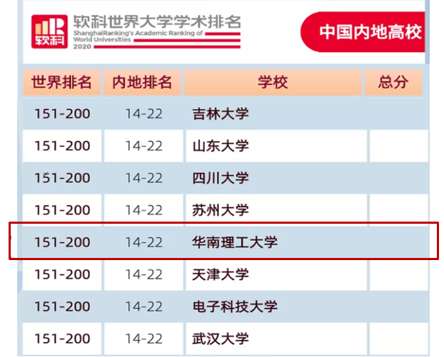 On August 15th, the 2020 Academic Ranking of World Universities (ARWU) was officially released by ShanghaiRanking Consultancy. This ranking saw South China University of Technology (SCUT) being listed within 151-200 worldwide, securing a place in the top 200 for the first time.