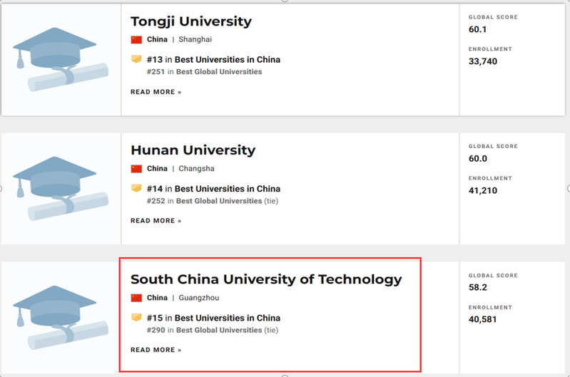 South China University of Technology (SCUT) has continued to improve in the 2021 Best Global University Rankings released by US News & World Report on October 20th. In the latest rankings, SCUT jumped 46 spots from last year to 290th in the list, ranking at No. 15th among Chinese mainland universities.