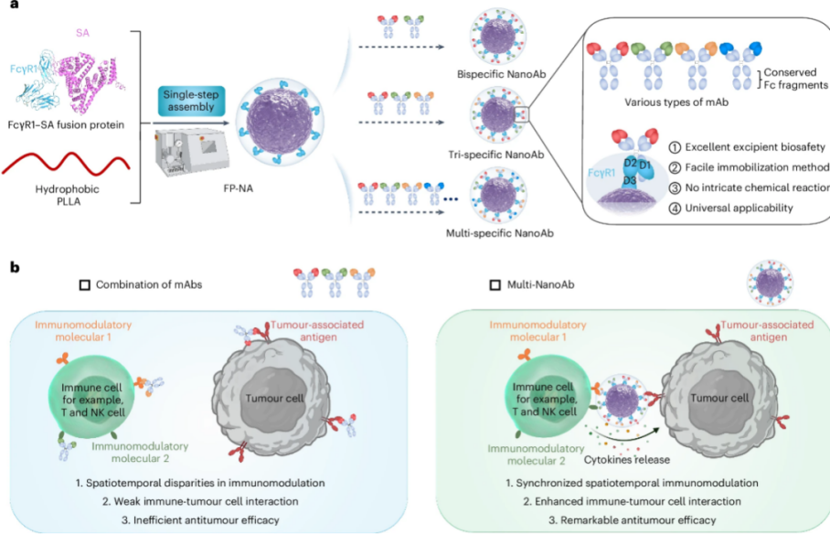At the core of this technology lies a universal antibody immobilization platform. The researchers conjugated anti-Fc antibodies—capable of recognizing the conserved Fc region of monoclonal antibodies—onto nanocarrier surfaces. When combined with two or more monoclonal antibody drugs, this system enables the efficient, controllable assembly of nano-multispecific antibodies. The platform addresses three critical challenges that have hindered clinical translation: cumbersome production processes, compromised binding affinity during antibody conjugation, and concerns regarding nanocarrier biosafety.
