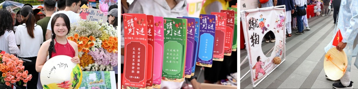 A Vietnamese float and activities including riddle guessing, traditional cuju (kickball), and a calligraphy set up by SCUT students drew many culture enthusiasts.
