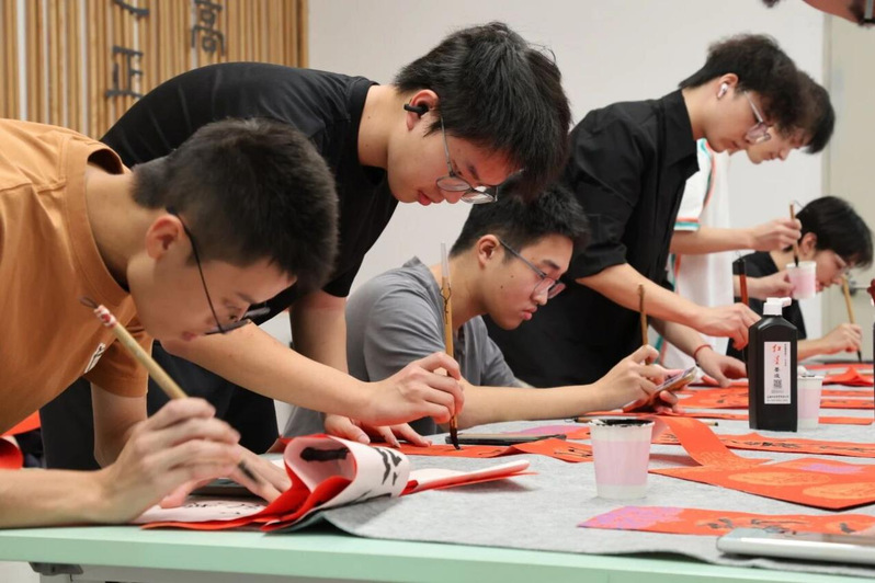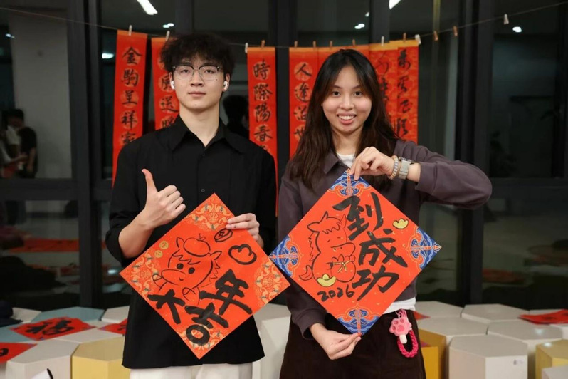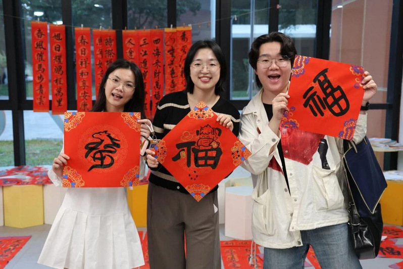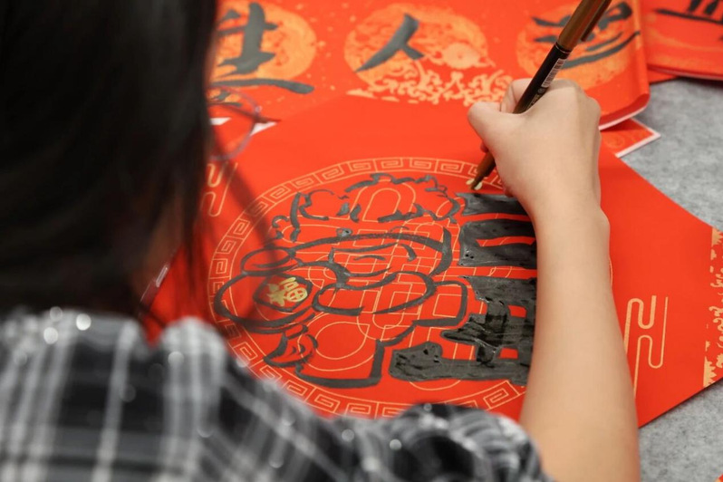 At the event site,students from the Calligraphy and Painting Association and the Calligraphy Interest Group of Junde College created special Spring Festival couplets together with a brush.