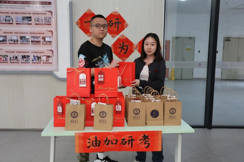 In addition to the strong welcoming atmosphere of spring, the college also presents gifts and heartwarming encouragement to students who are going to participate the post-graduate entrance examination.
