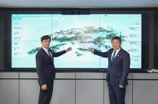 Tang Hongwu, Secretary of the Party Committee of SCUT, and Mok Wing Cheung, Director of the Drainage Services Department of Hong Kong, attended the system launch ceremony