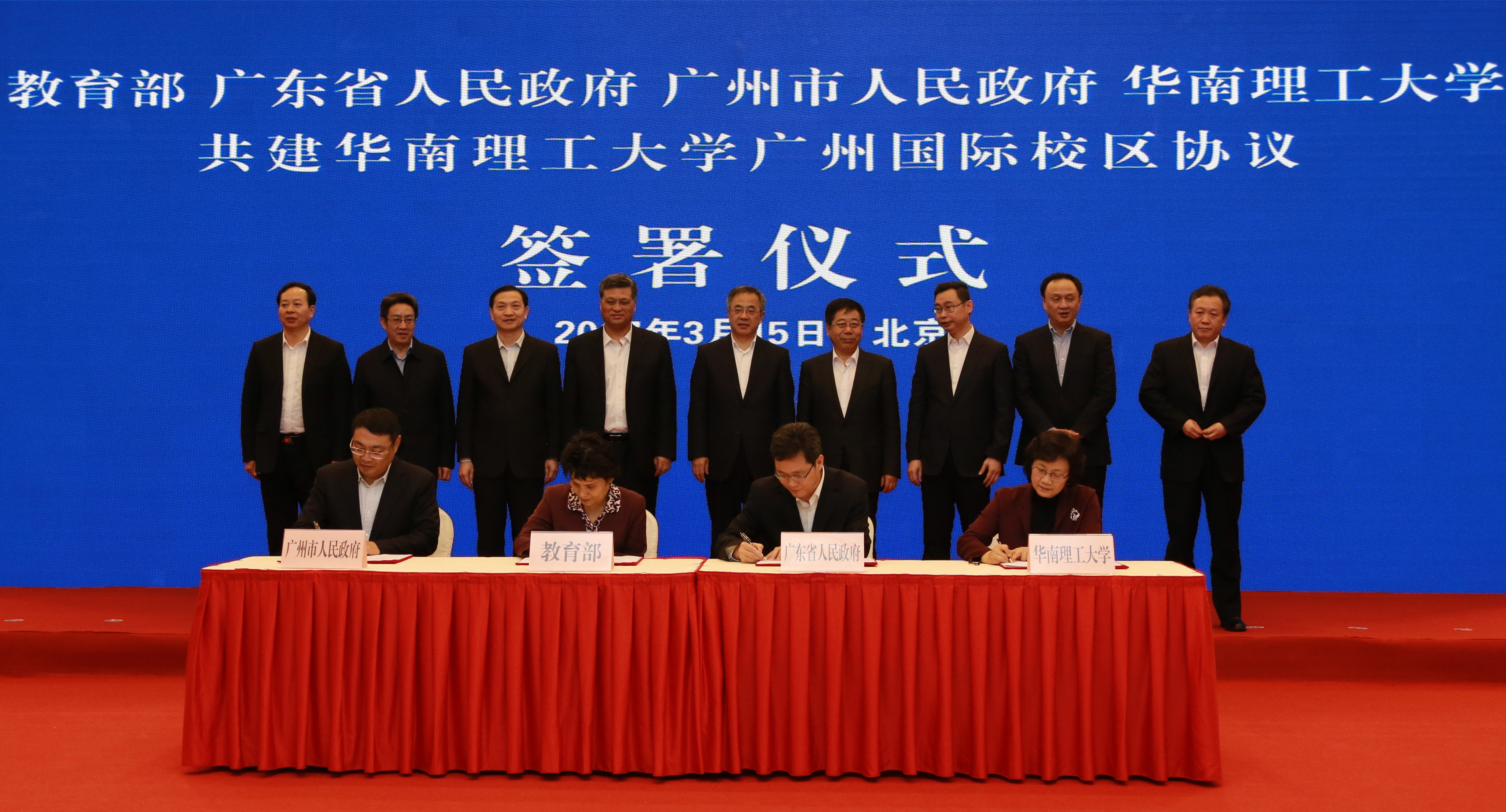 TheagreementofbuildingSCUT’sGuangzhouInternationalCampuswassignedinBeijingyesterdayAnewinternationalcampusofSCUThasbeenconfirmedtobebuiltinGuangzhoutoadvancehigh-leveleducationandscientificresearch.TheChineseMinistryofEducation(MOE),theGuangdongProvincialGovernment,theGuangzhouMunicipalGovernment,andSCUTwillbeworkingtogethertofacilitatetheambitiousplan.OnMarch15inBeijing,witnessedHuChunhua,CPCPolitburoMemberandSecretaryoftheCPCGuangdongProvincialCommittee,ChenBaosheng,MinisterofEducation,MaXingr