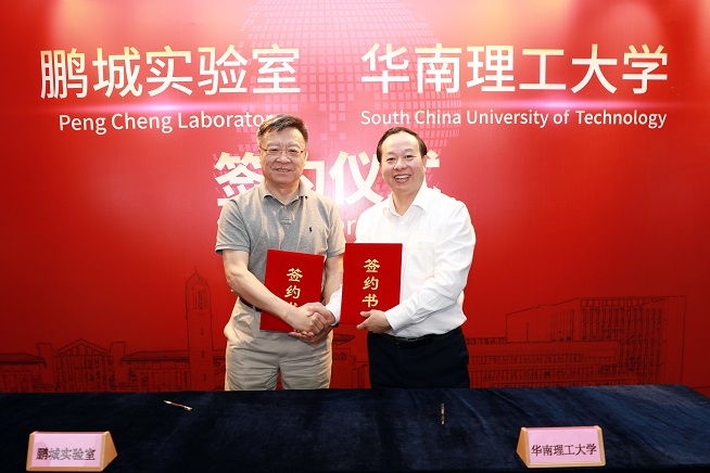 (Signing Ceremony)On the afternoon of April 8th, South China University of Technology and Peng Cheng Laboratory signed a strategic cooperation framework agreement in Guangzhou International Campus to jointly establish the School of Future Technology (Hua Peng Future School). Zhang Xichun, Chairman of the University Council, academician Gao Wen, director of Peng Cheng Laboratory, and academician Shen Xiangyang, the founder and chairman of International Digital Economy Academy attended the signing