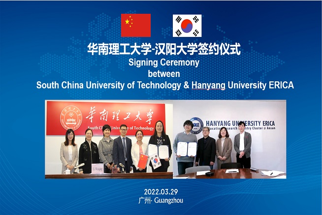On March 29th, South China University of Technology held a “virtual” signing ceremony with Hanyang University ERICA. Li Weiqing, Vice President of South China University of Technology, and Bongyoung Yoo, Vice President of Hanyang University ERICA attended the signing ceremony.Li Weiqing introduced the recent development of SCUT, especially the latest achievements of Guangzhou International Campus. Given the close educational exchanges and cooperation between SCUT and Hanyang University ERICA for