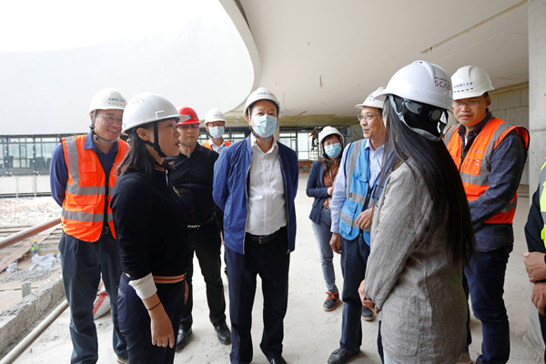 On the morning of November 12th, Zhang Xichun, Chairman of the University Council, inspected the construction progress of GZIC Phase-Ⅱ on site. Tao Shaojing, Vice-chairman of the University Council attended the inspection.Zhang Xichun successively visited the D6 gymnasium, E5 innovation and entrepreneurship center, E3 library, G5 talent apartment and other buildings under construction of GZIC Phase-Ⅱ. During his visit, Zhang listened to the reports by the relevant principals of the construction