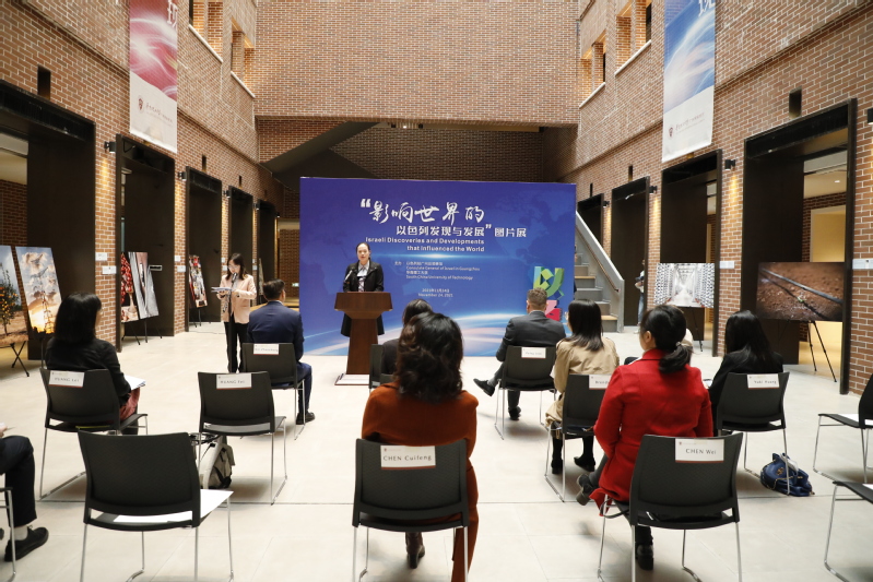 On the morning of November 24th, the photo exhibition “Israeli Discoveries and Developments that Influenced the World” jointly organized by South China University of Technology (SCUT) and the Israeli Consulate General in Guangzhou was officially opened in Guangzhou International Campus. Li Weiqing, Vice President of SCUT, Peleg Lewi, Consul General of Israel in Guangzhou, and Carmel Halevy, Deputy Consul General of Israel in Guangzhou, attended the opening ceremony and delivered speeches.Li Weiq