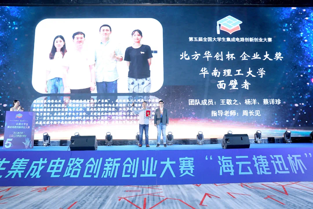 From August 26th to 28th, the finals of the 5th China College Students’ Integrated Circuit Innovation and Entrepreneurship Competition was successfully hosted by the Talent Exchange Center of the Ministry of Industry and Information Technology. The award ceremony of the finals was held in Chongqing on October 17th. The 12 participating teams sent by the School of Microelectronics from South China University of Technology won 1 enterprise special award, 3 first prizes, 4 second prizes, and 5 thir
