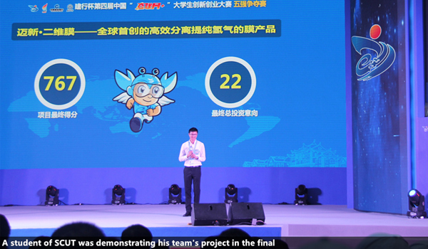 StudentteamsofSCUTtookhometwoGoldPrizesandtwoSilverPrizesinthe4thChinaCollegeStudents’“InternetPlus”InnovationandEntrepreneurshipCompetition,settingthebestrecordinhistoryfortheuniversity.Thefinalofthecompetitionwasheldlastweekend,when210studentteamsfromacrossthecountrygatheredatXiamenUniversity,Fujianprovince,tocompetefornationaltitles.“InternetPlus”isanationwidecontestthataimstopromote“massinnovationandentrepreneurship”amongcollegestudentsofChina.Thiswasthefourtheditionoftheevent,attracting2.65