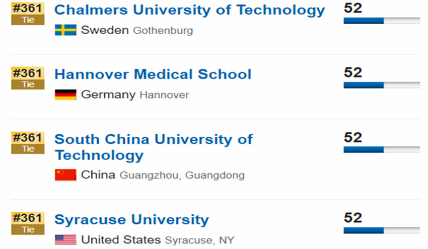 SCUTwasrankedNo.361intheGlobalUniversityRankings2018publishedbytheU.S.NewsandWorldReport,movingup39placescomparedtolastyear.ThelatestrankingswereupdatedonOctober30,listingSCUTasthe18thinthemainlandChina,upfromthe19thlastyear.Insubjectrankings,SCUT’sagriculturalscience,engineering,chemistry,materialsscience,andcomputersciencewerenamedwithintheglobaltop100,whileagriculturalsciencetookaremarkableplaceatthe17thslot.ThisisthefifthyearforU.S.NewsandWorldReporttoproducetheBestGlobalUniversitiesRankings