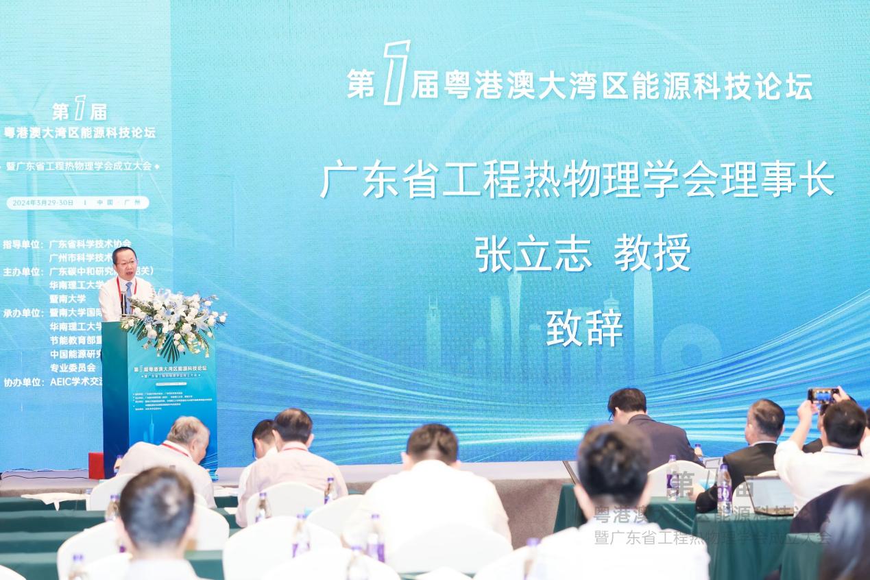 2024年3月29-30日,在广东省科学技术协会、广州市科学技术协会的大力支持下,第一届粤港澳大湾区能源科技论坛暨广东省工程热物理学会成立大会在广州顺利召开。广东省工程热物理学会是由华南理工大学、暨南大学、南方科技大学、中国科学院广州能源所、哈尔滨工业大学(深圳)等省内多家单位共同发起,由广东省科学技术协会指导,经广东省民政厅批准筹建的省一级学会。考虑粤港澳大湾区工作便利、沟通紧密,同步在香港筹建粤港澳大湾区工程热物理学会。两个学会采用一套人马、两块牌子、双理事长的组织机构和管理模式协同筹建。学会积极联合粤港澳大湾区及省内其它区域高校、科研院所、企事业单位,共同打造了“粤港澳大湾区能源科技论坛”品牌活动。本次会议由华南理工大学联合广东碳中和研究院(韶关)、暨南大学共同主办,华南理工大学传热强化与过程节能教育部重点实验室联合暨南大学国际能源学院、中国能源研究会绿色低碳技术专业委员会共同承办,AEIC学术交流中心协办。大会于29日选举产生了广东省工程热物理学会第一届理事会,我校化学与化工学院张立志教授当选学会理事会理事长。