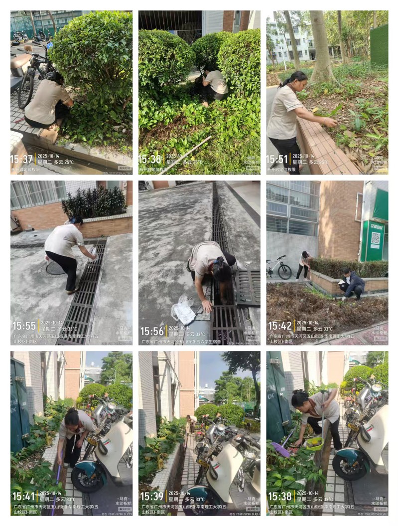 动员结束后,后勤员工迅速投入劳动。大家手持扫把、垃圾铲、铁钳、垃圾袋等工具,以物资大楼及周边区域为重点开展大扫除:部分人员专注清理绿化带内隐藏的垃圾杂物,确保绿植生长环境洁净;另一部分人员则严格按照蚊虫孳生地处理规范,逐一排查并清理积水、疏通堵塞水沟,从根本上切断蚊虫滋生链条。在全体人员的齐心协力下,办公楼及周边环境很快恢复整洁有序,有效消除了蚊虫滋生的外部隐患,为校园“两热”防控工作筑牢了环境防线。