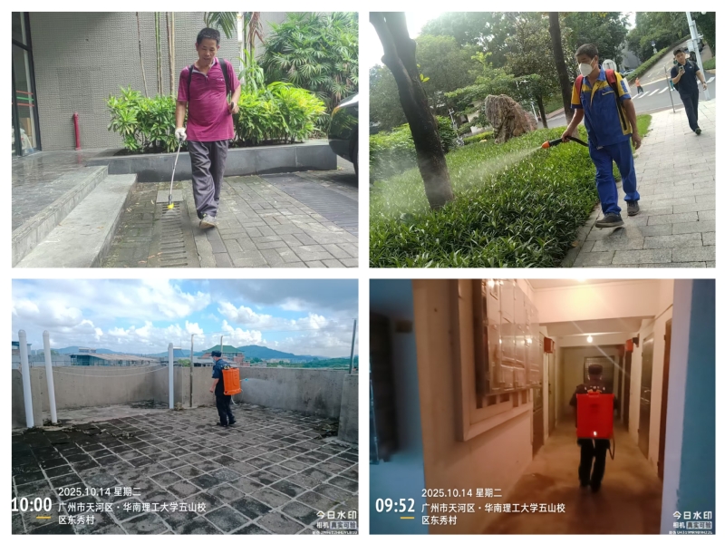 为强化校园“两热”防控效果,后勤处联合物业公司组建专业消杀团队,制定“分区覆盖、重点攻坚”的精细化消杀方案,并在消杀前同步通过学生宿舍群、校园公告栏、业主群告知师生消杀时间与注意事项,形成“监测-消杀-反馈”的闭环管理。消杀团队依据校园蚊虫密度监测数据,优先对教学楼、宿舍区、食堂周边等人员密集区域开展高频次消杀,采用符合安全标准的低毒药剂,对下水道、垃圾中转站、绿化带灌木丛等蚊虫易孳生点位进行重点喷洒。