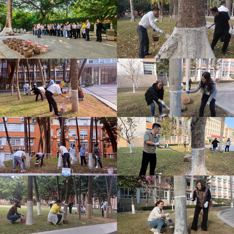为深入践行习近平生态文明思想,全面落实立德树人根本任务,将党性教育与生态实践深度融合,2025年12月11日下午,后勤处党总支精心组织了以“树木刷白,守护绿色”为主题的党日活动。这场活动既是一次接地气的劳动实践,更是一堂行走在校园里的“生态党课”,让党员们在服务师生、守护绿植中锤炼初心、践行使命。