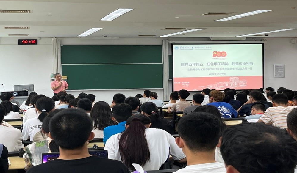 为贯彻教育部等十部门《全面推进“大思政课”建设的工作方案》精神,落实广东省教育厅《关于做好2023年秋季学期大中小学校党组织书记、校长上第一堂思政课工作的通知》要求,引导2023级新生同学们学习习近平新时代中国特色社会主义思想,了解校史校情,2023年9月7日上午,生物科学与工程学院党委许国民书记给2023级193名新生同学讲授秋季学期“思政第一课”。