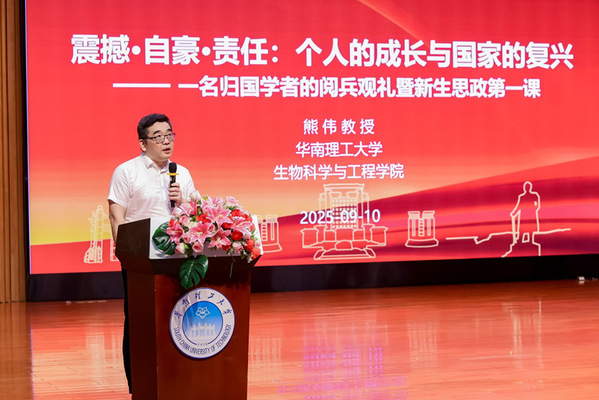 为深入践行习近平总书记关于学校思政课建设的重要指示,积极响应相关工作要求,2025年9月10日,生物科学与工程学院院长熊伟教授以《震撼·自豪·责任:个人的成长与国家的复兴》为题,为学院2025级新生带来了一场别开生面的开学“思政第一课”。