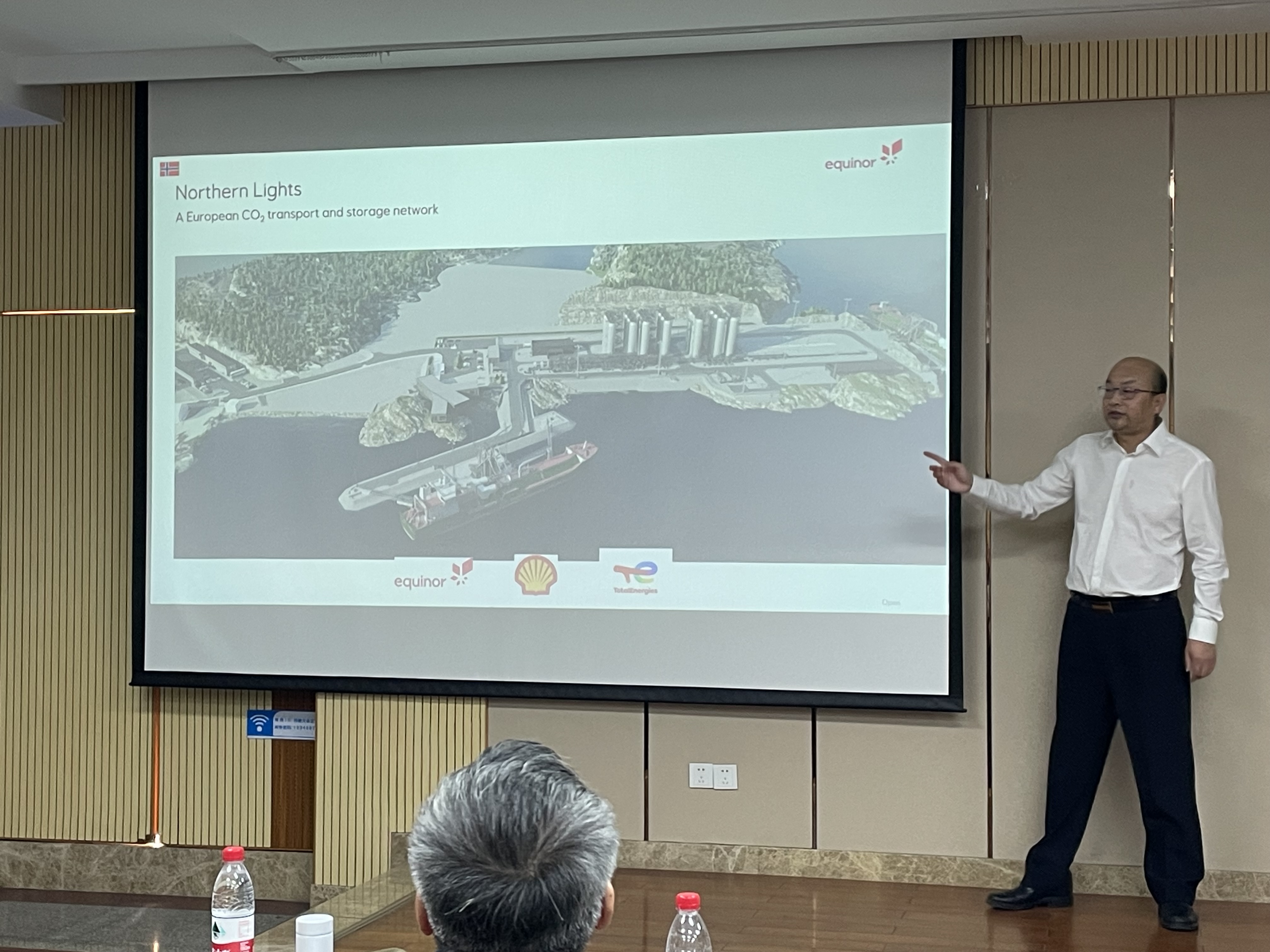 早上,杨涛院士首先在化工学院举行了题目为”Carbon Capture and Storage (CCS) Scale-up”的学术报告。报告介绍了挪威能源巨头艾奎诺公司实施的二氧化碳封存项目详情,深入浅出的给出了碳封存项目实施的意义,比较了管道运输与轮船运输的优缺点,指出任何项目的产业化离不开商业公司的参与。同时,杨涛院士提出中国的碳封存项目要结合具体地质条件,起到后发弯道超车的效果。学术报告后与学生进行了热烈的学术交流。